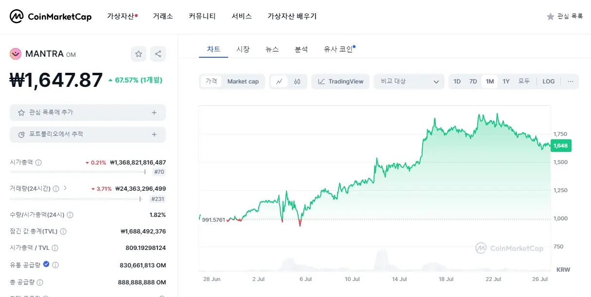 만트라(OM)코인 분석 & 전망에 대하여 알아보자.